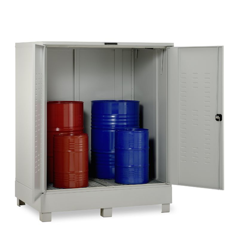 Dulap metalic pentru stocare recipiente cu substante periculoase.