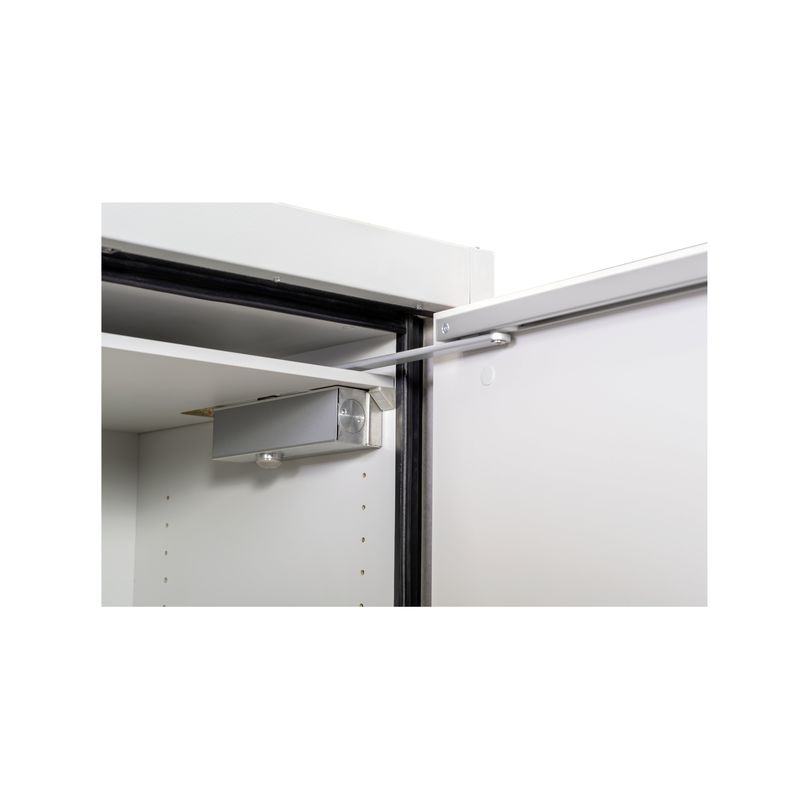 - Constructie certificata pentru montarea in siguranta a ventilatorului de evacuare pe partea superioara a dulapului, fara afectarea rezistentei la foc