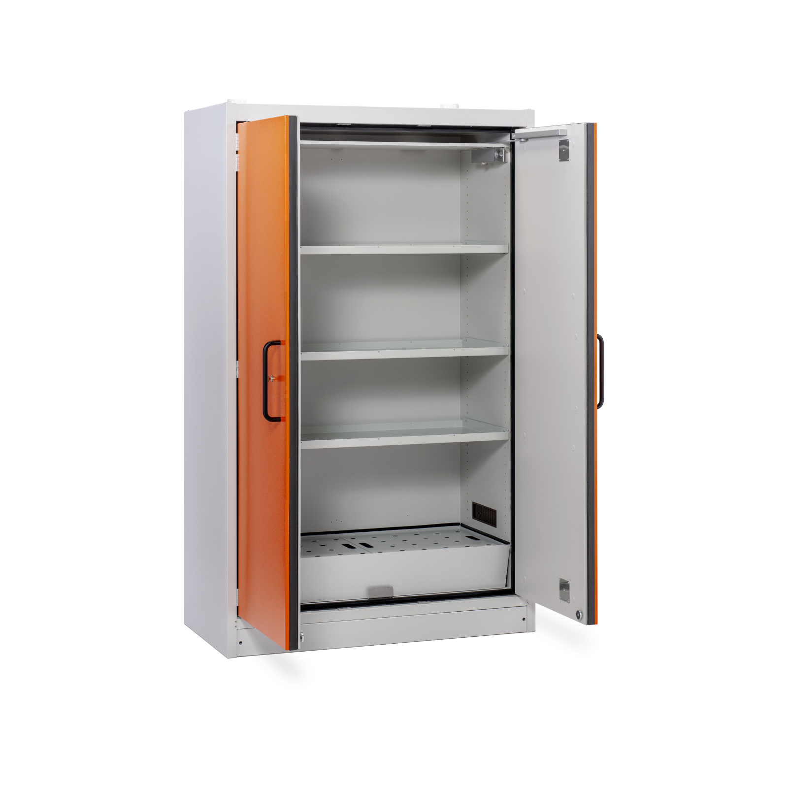 Dulapul metalic de siguranta CEMO PROline 12/20 Tip 90, este proiectat pentru depozitarea in siguranta a lichidelor inflamabile si a substantelor periculoase, oferind rezistenta la foc de 90 de minute conform standardului european DIN EN 14470-1. Acest model este conceput pentru depozitarea recipientelor individuale cu volum de pana la 60 litri si este echipat cu tava de retentie cu volum marit, fiind potrivit pentru cantitati mai mari per recipient. Constructia robusta si sistemele avansate de siguranta il fac ideal pentru utilizare profesionala in industrie, laboratoare si spatii tehnice.
